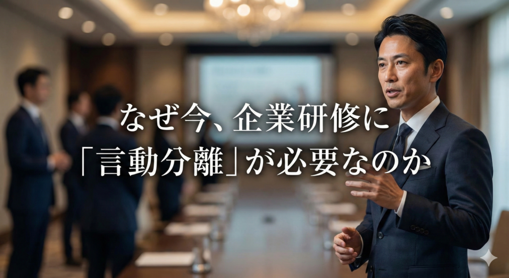 企業研修における「言動分離」の重要性 なぜ今、企業研修に「言動分離」が必要なのか 〜非言語コミュニケーションから組織の信頼力を高める帝王学的アプローチ〜 企業の成長段階が進むほど、人材育成の課題は「スキル」や「知識」だけ